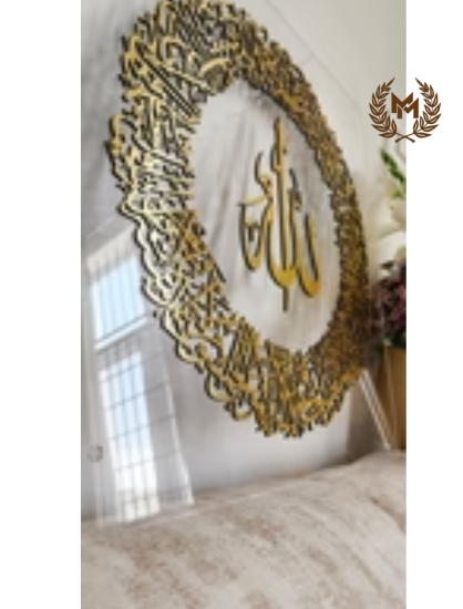 Ayatul Kursi Islamic framed wall art - Round - Clear & Gold
