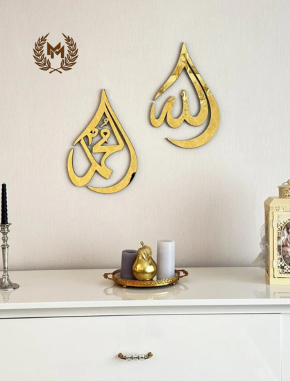 Allah (SWT) Mohammad (PBUH) Wooden Islamic Wall Art - Drop Design